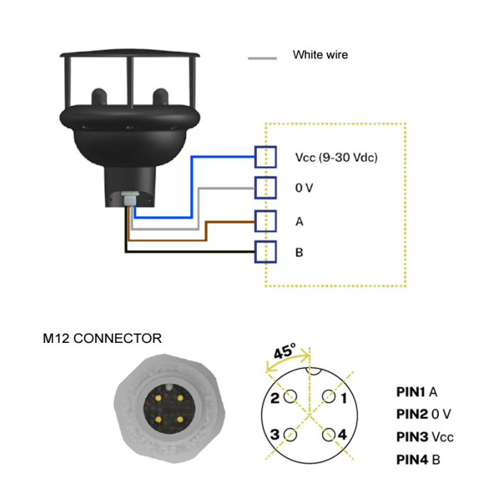 WUS4423 has been designed to be used in industrial applications. It measures the wind speed and direction and normally is connected to PLCs or similar devices, examples: